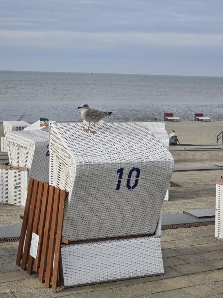 Heute war für Petra nix mit Strandkorb, fast geschlossene Wolkendecke und ihr zu kalt. Wind-technisch soll es wohl erst ab der kommenden Nacht aufbrisen, meine App zeigt fürs Wochenende 80-90 km/h an, aber das Sturmtief „Detlef“ nimmt wohl eine nördlichere Route als noch gestern prognostiziert.